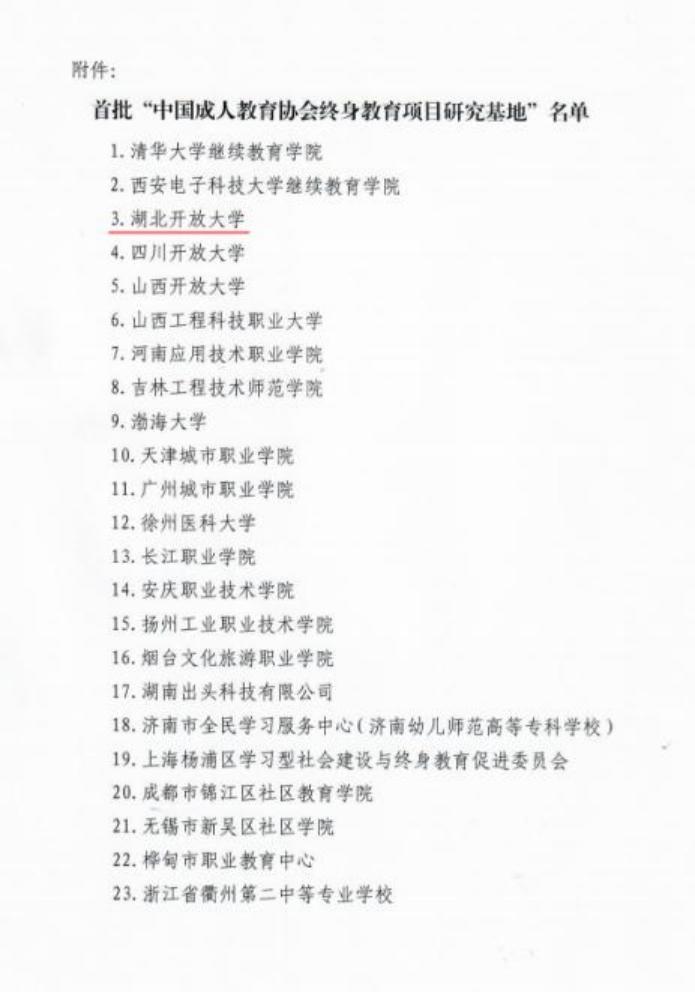 本网讯(通讯员 寇月 文/图)11月24日,中国成人教育协会公布首批“中国成人教育协会终身教育项目研究基地”名单,我校位列其中。
